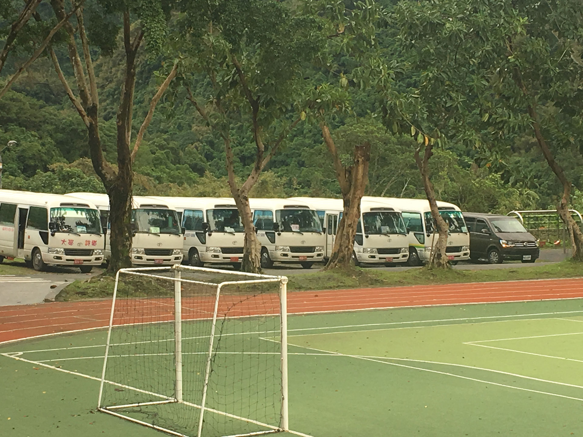- 交通車每日上午接學童時間地點,由不同路線交通車和家長協調。傍晚放學時段,交通車會先行駛入校園等候。交通車的司機與隨車人員(不一定有)會每日與家長確認搭車與否。