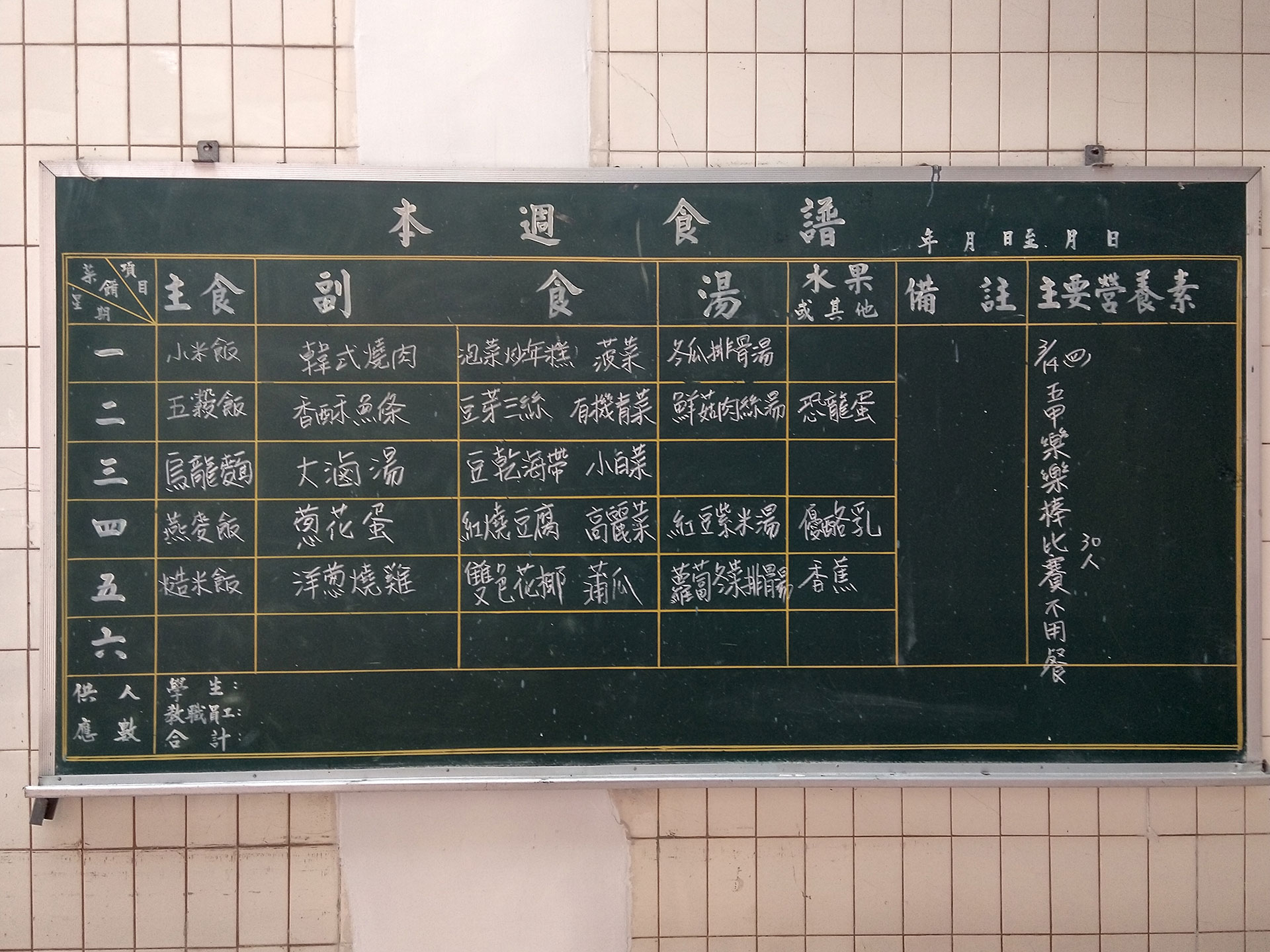 - 每周兩次水果供應,一天乳品供應。