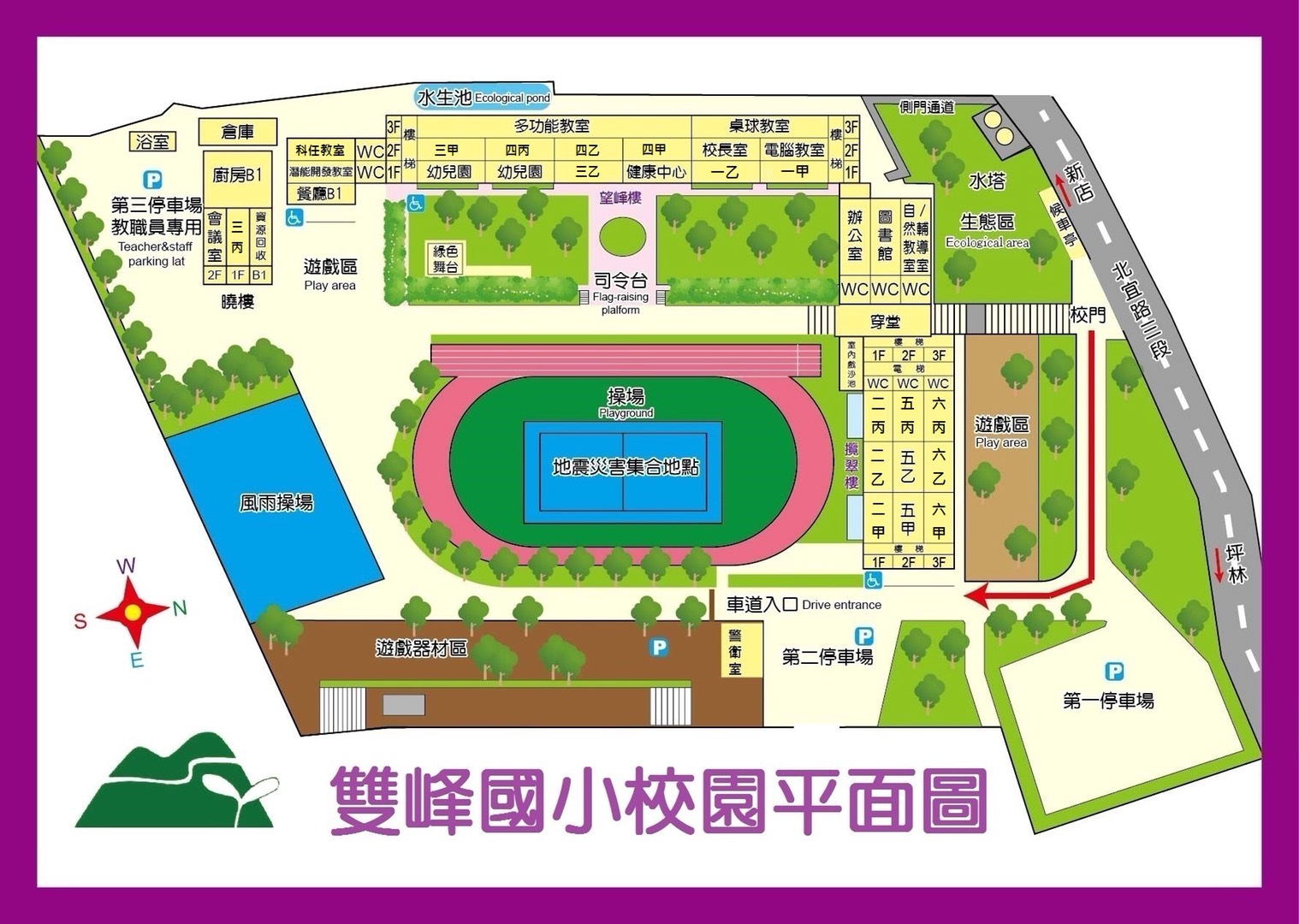 - 請遵守導護人員指揮進出。學生下車後,家長馬上離開者,也請進入上述停車場讓學生上下車,然後迴車返新店。「請不要」路邊停車放人,或跨雙黃線大迴轉返新店。